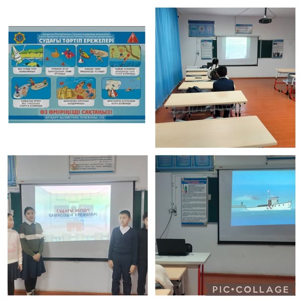 Қауіпсіздік сабағы. “Судағы қауіпті жағдайларды қалай тануға және судағы жазатайым оқиғалардың қалай алдын алуға болады?” тақырыбында мағұламат берілді.
