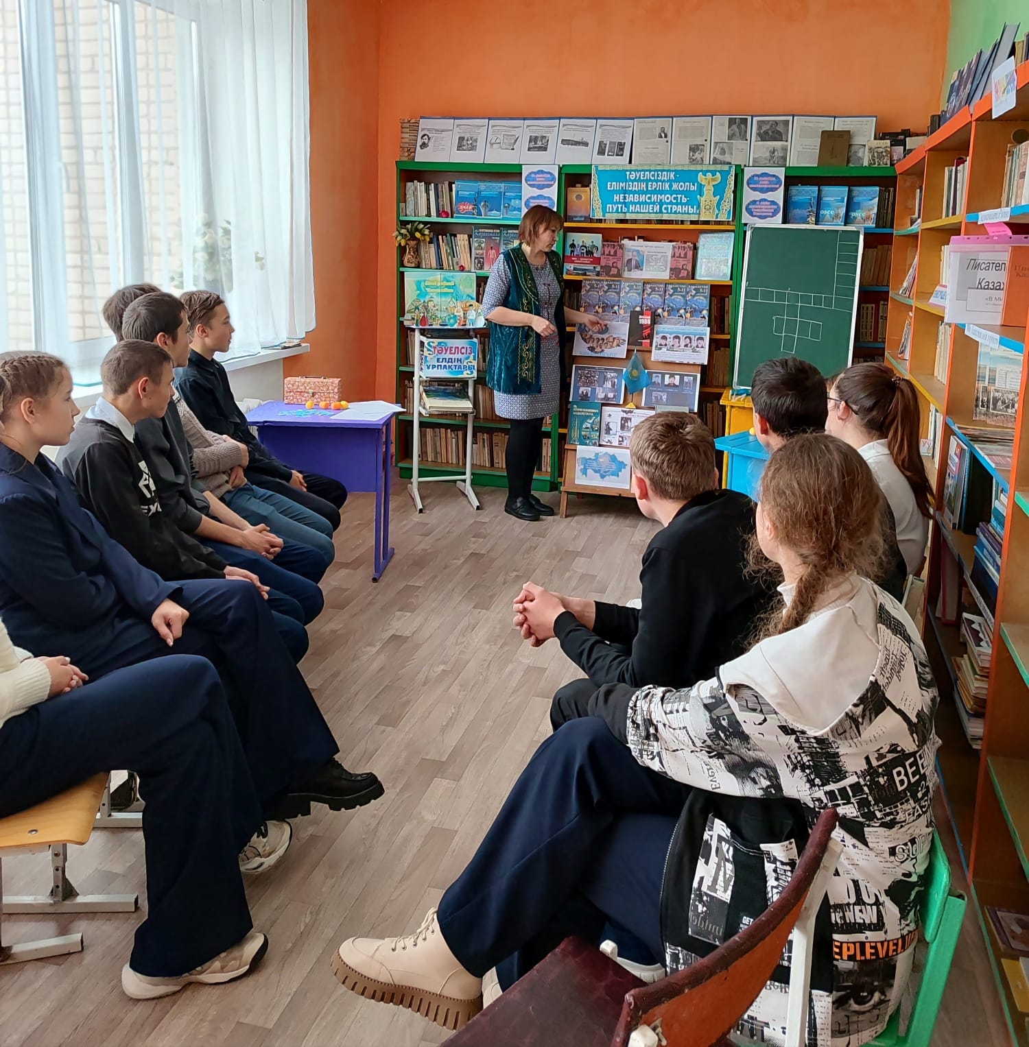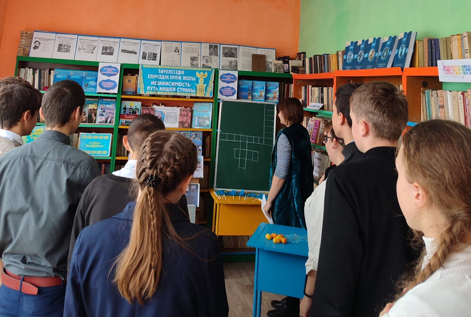 Отансүйгіштік пен азаматтыққа, туған республикаға деген мақтаныш сезімін тәрбиелеу, танымдық белсенділікті, интеллектті дамыту, ой-өрісін кеңейту мақсатында 13 желтоқсанда Крещенка орта мектепте кітапханашы 9 және 11 сынып оқушыларымен Қазақстан Республикасының Тәуелсіздік күніне арналған "дәуір, оқиғалар, тағдыр, куәлік" ойынын өткізді.