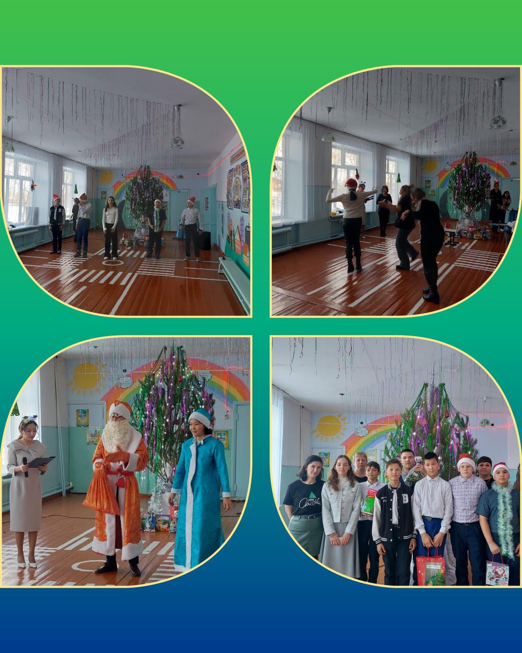 Міндеттері: Білім алушылардың Жаңа жылдың атрибуттары туралы білімдерін жүйелеу және жалпылау; оқушылардың ұйымдастырушылық және шығармашылық қабілеттерін дамыту; коммуникативтік қабілеттерін қалыптастыру; танымдық қызығушылықты, сөйлеуді, есте сақтауды, зейінді дамыту.